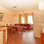 Villa "To Hus" In Sellin - Appartement 02 Mit Kamin Und Balkon features an equipped kitchenette with an oven and a dishwasher at the guests' disposal. The closest bus stop is Sellin Sparkasse, which is nearly 5 minutes' walk away. The use of a solarium can contribute to a more enjoyable stay. Various sport options, such as horseback riding and mini golf, are provided in the area.